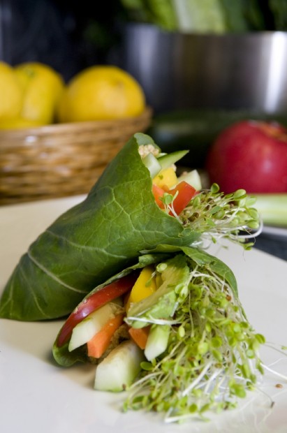 Danielle with a Raw Sunflower Seed Hummus Collard Wrap